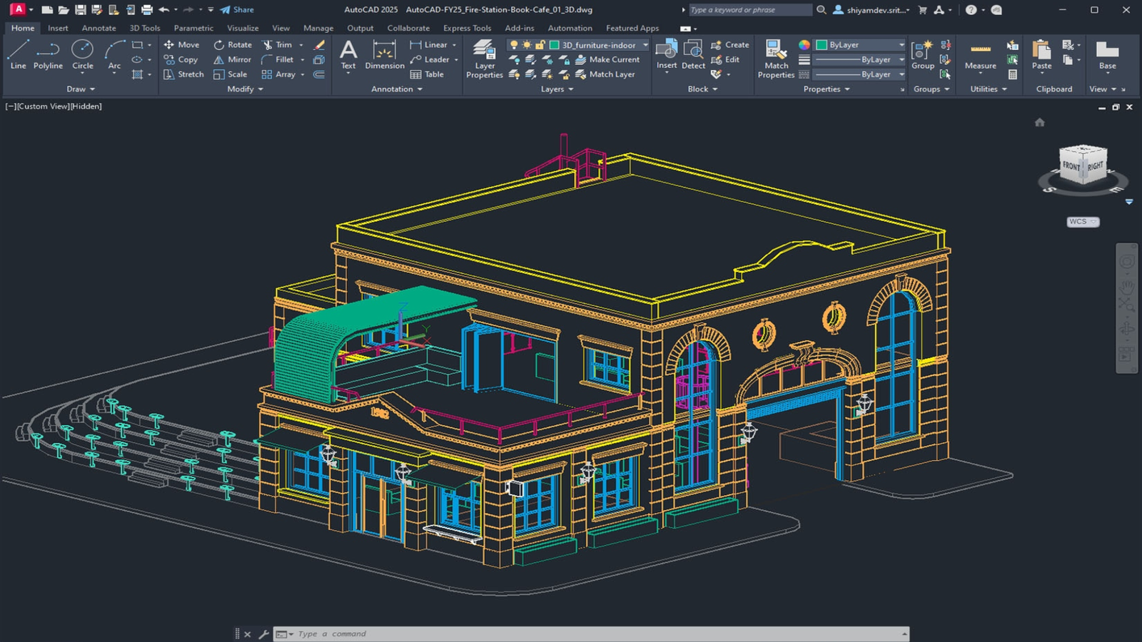 The training environment replicates real-world design scenarios, allowing students to work on 2D drafting, 3D modeling, rendering, and detailed project documentation directly within AutoCAD.